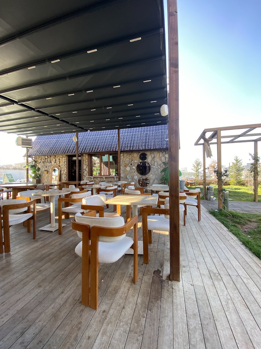 The seating is mostly al fresco with quality furniture — sturdy chairs, shaded benches, and garden-style spots that encourage lingering conversations. Given its open-air setting, visitors should expect no enclosed seating or heating inside, which can make it less than ideal in colder weather.